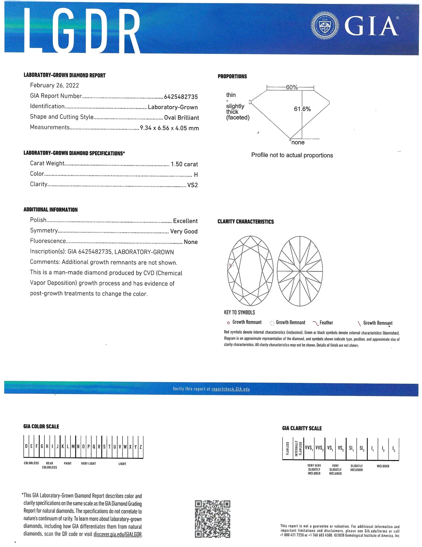 Featuring one oval brilliant cut diamond, weighing 1.50 carat, accompanied by a GIA Diamond Grading Report #6425482735, stating the diamond is H color, VS2 clarity, set with four prongs in a 14k white gold head, set into a 14k yellow gold 3.00 mm flat band, all weighing 4.40 grams, ring size 6. Note: can be sized, diamond can be sold loose.
