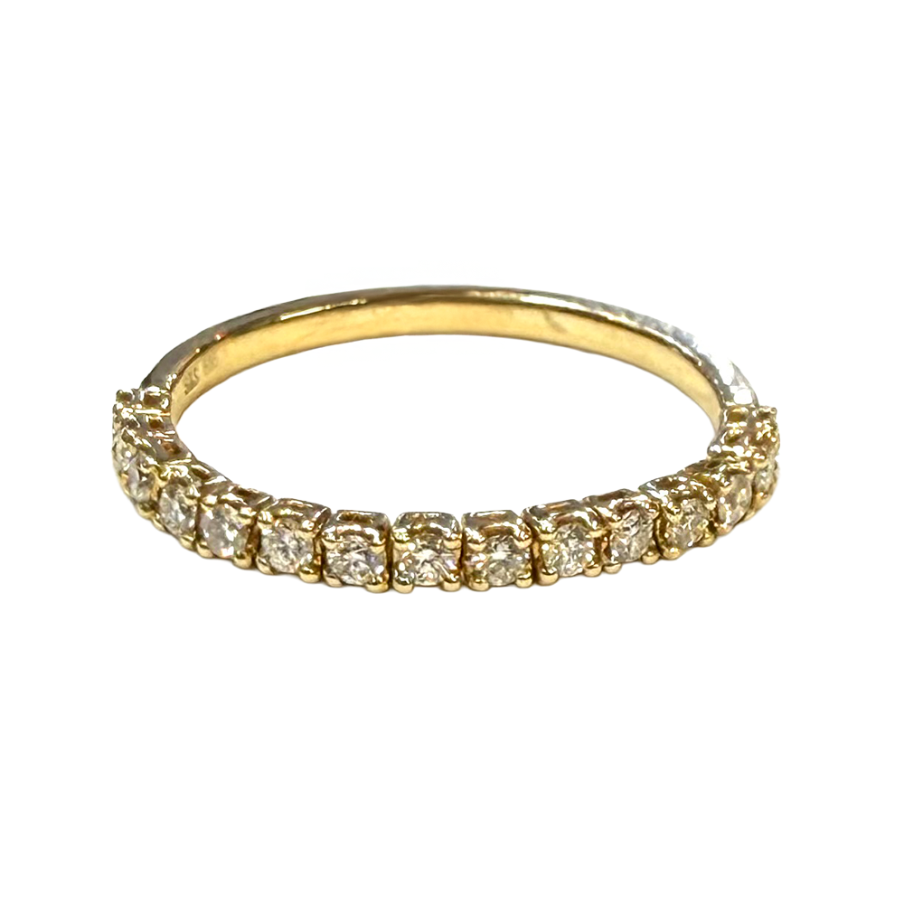 Decorated 13 round brilliant cut diamonds, weighing a total of .36 carat, extending half way around the band, the top links are flexible and the bottom section is solid, weighing 1.60 grams, size 6 1/2. Note: can be sized