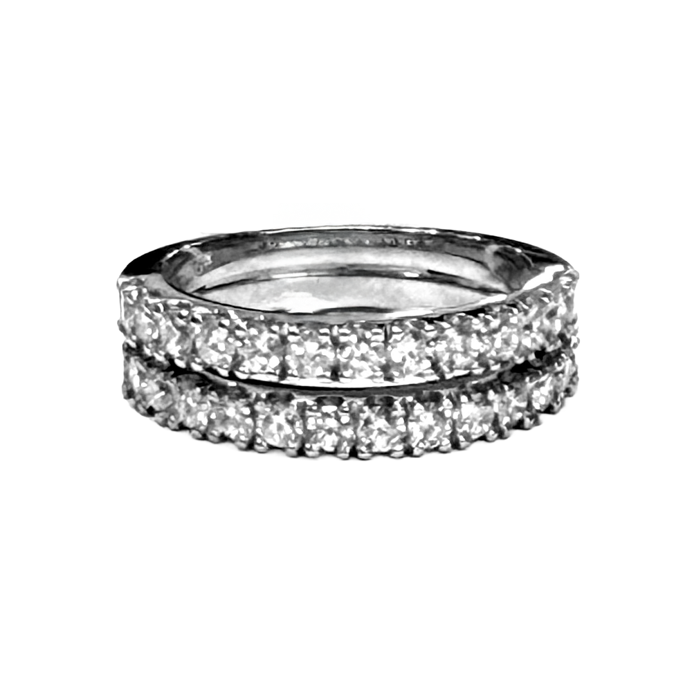 Each decorated by 13 round brilliant cut diamonds, weighing a total of .52 carat, VS2 to SI1 clarity, G to H color, prong set, extending half way around the band, graduating from 2.70 to 1.90 mm, weighing 2.50 grams, ring size 6 1/2. Note: can be sold separately; can be sized.